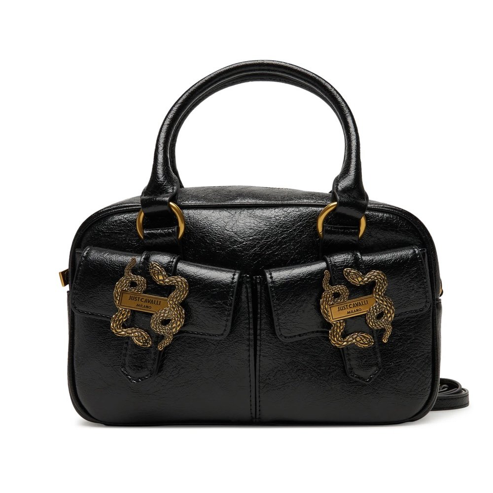 Just Cavalli collections include Shoulder Bags Known for their versatility and stylish look, often feature animal prints and motifs, bright colors, metallic accents, tiger motif logo, gold-tone metal plaques that decorate the front of the bags. Tote bags: are spacious and perfect for every day carry on, often seen with the brand's signature Just Cavalli motifs and details. Crossbody: These bags often are more casual and casual hands free option with bold and playful elements. Clutches / Mini Bags: Just Cavalli statement evening wear often embellished with luxurious materials, unique textures and strong logo recognition. Backpacks: Combining functionality with fashion, usually Just Cavalli backpacks feature bright prints and construction. Just Cavalli bags are characterized by their high-quality materials, fashionable designs, and a touch of Italian flair, popular among brands and fashion couture lines.