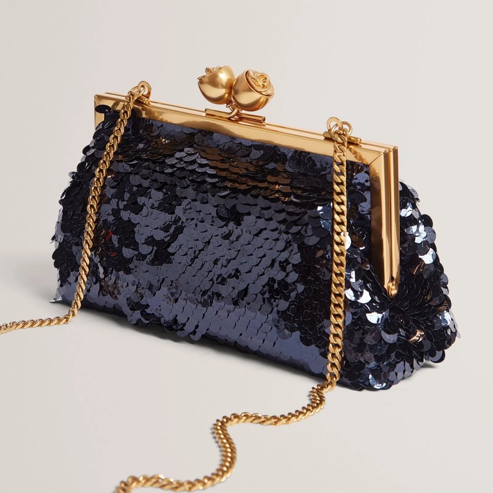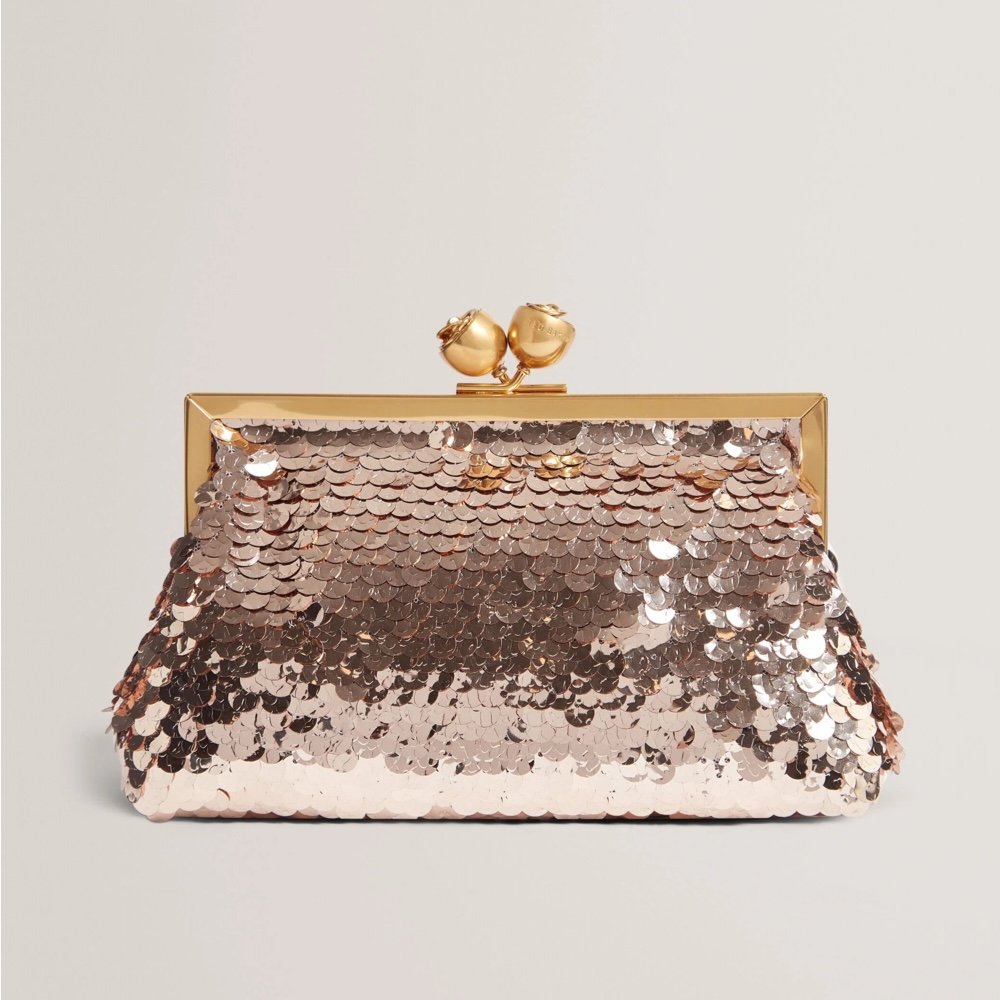 SEQUINZ Rose Detail Sequin Clutch Bag
