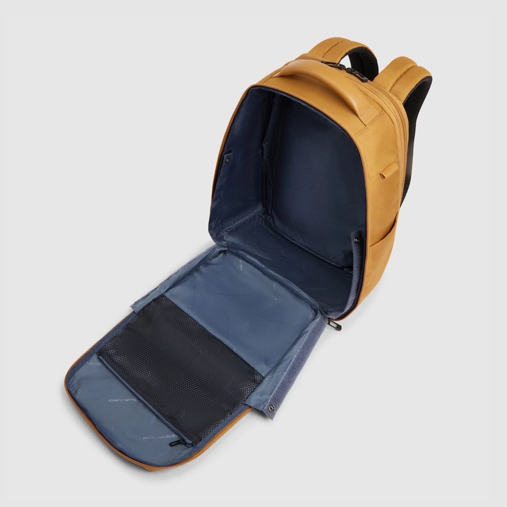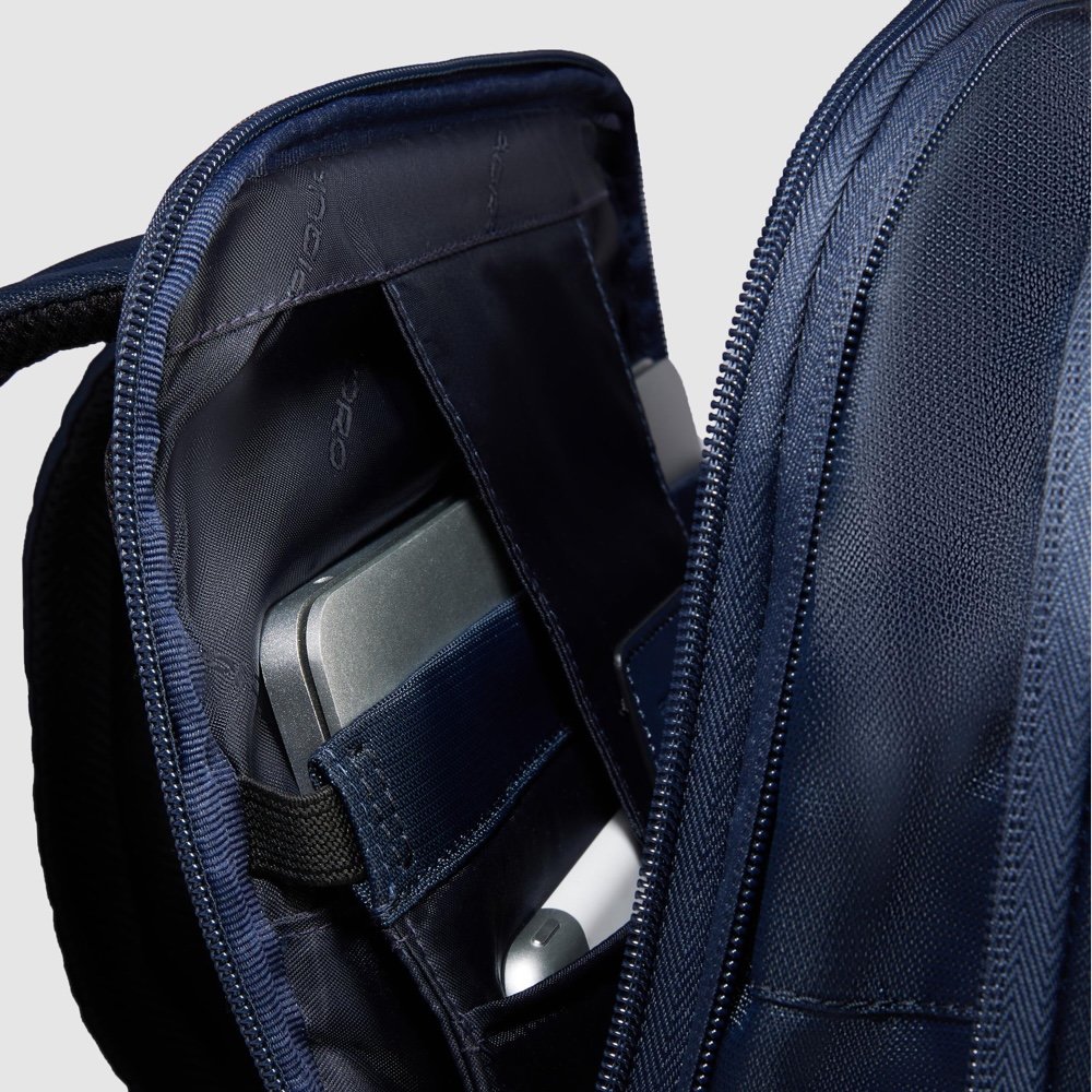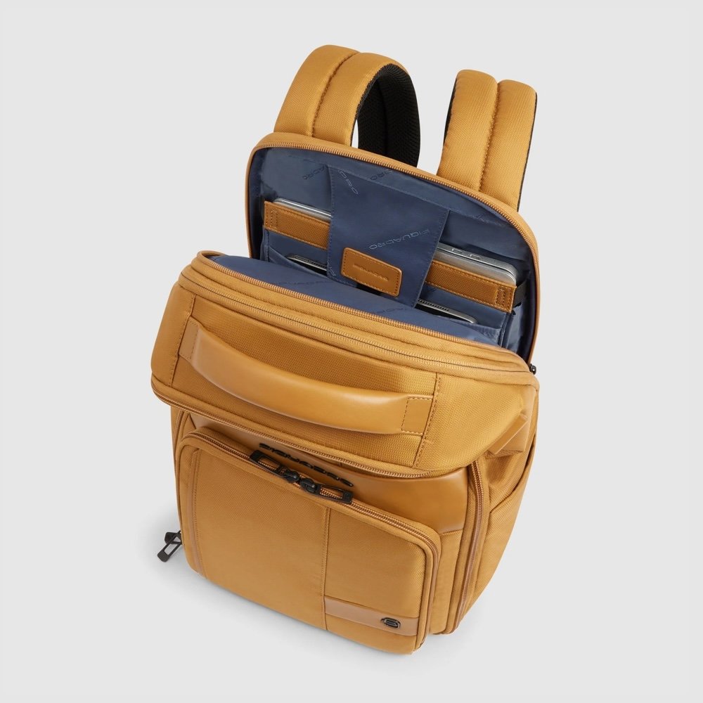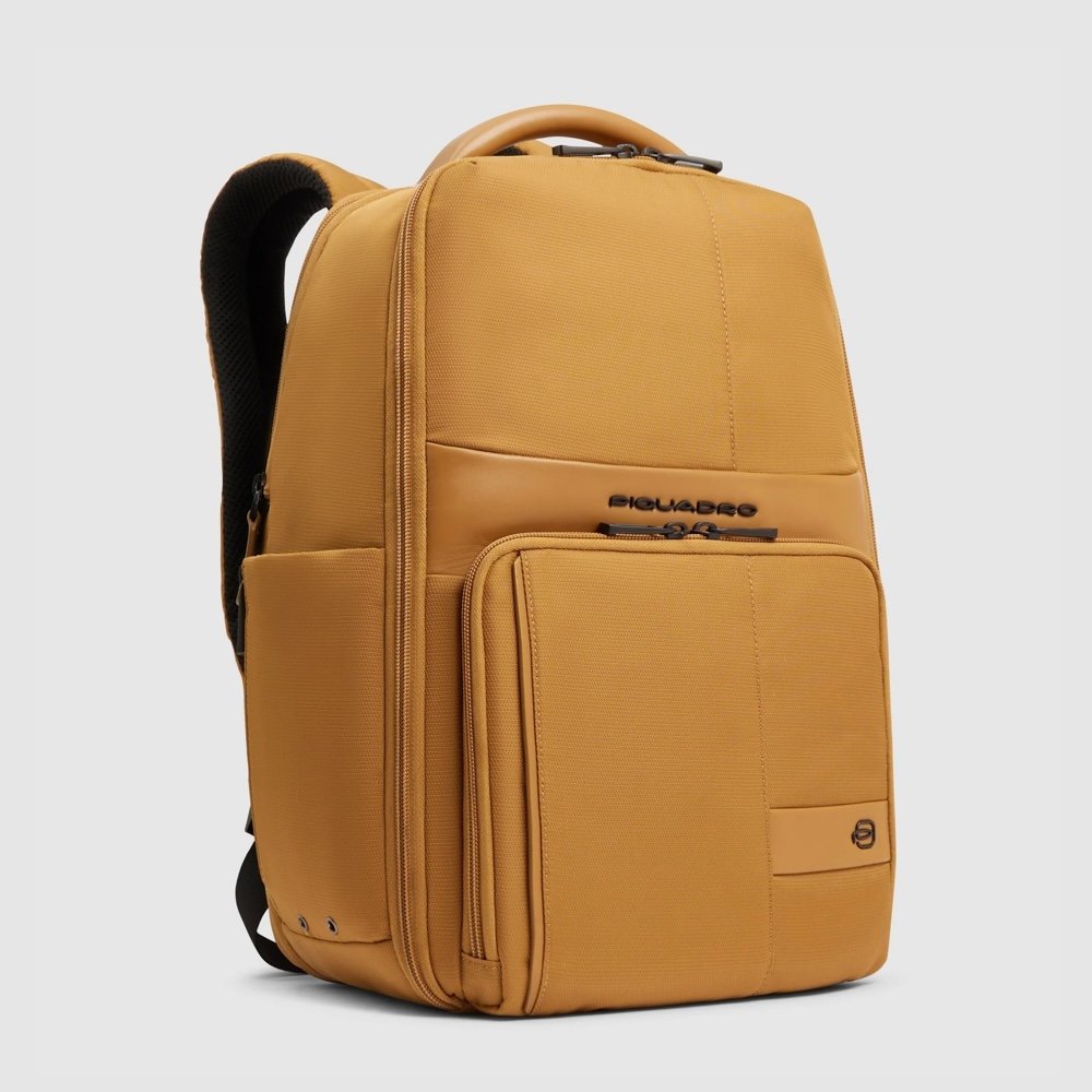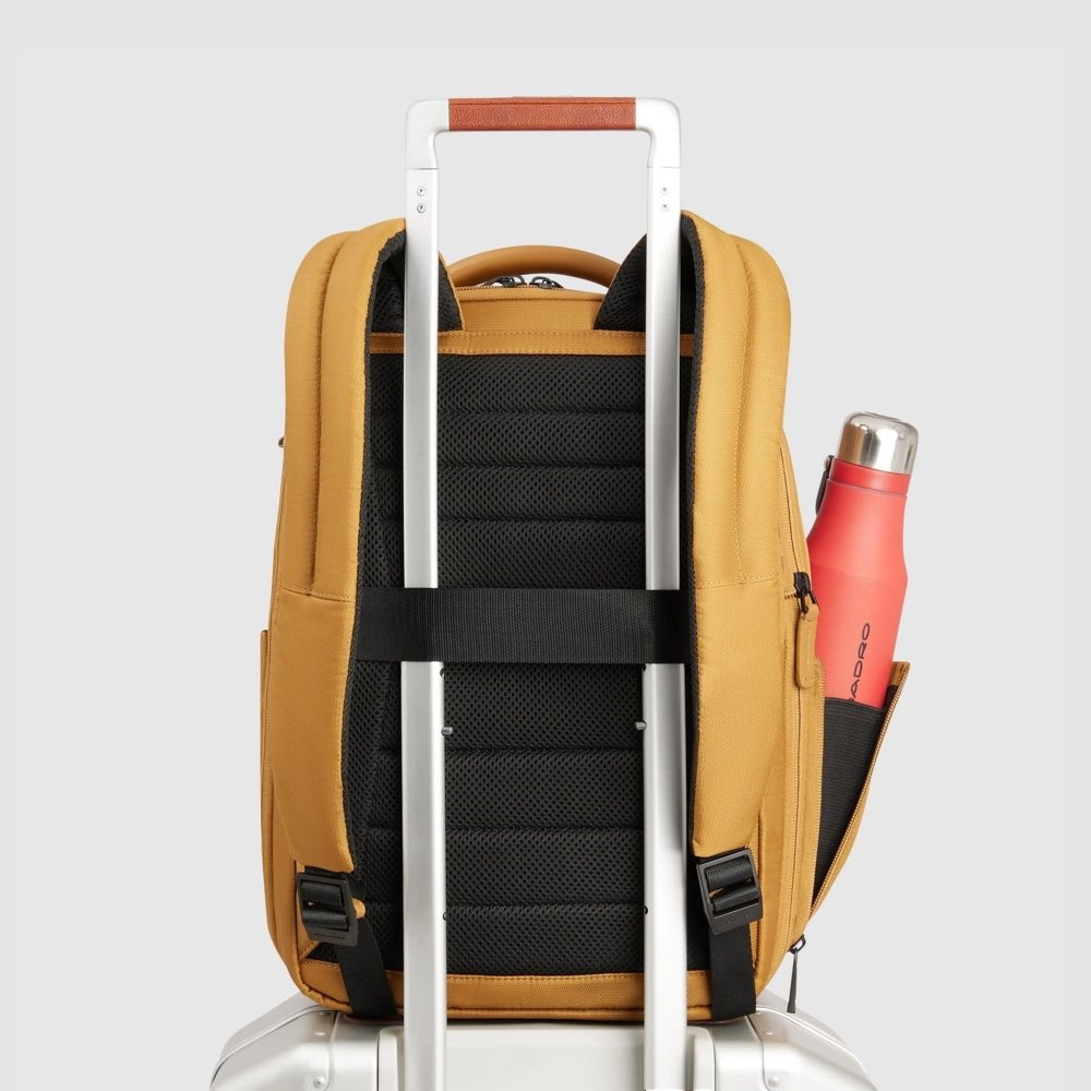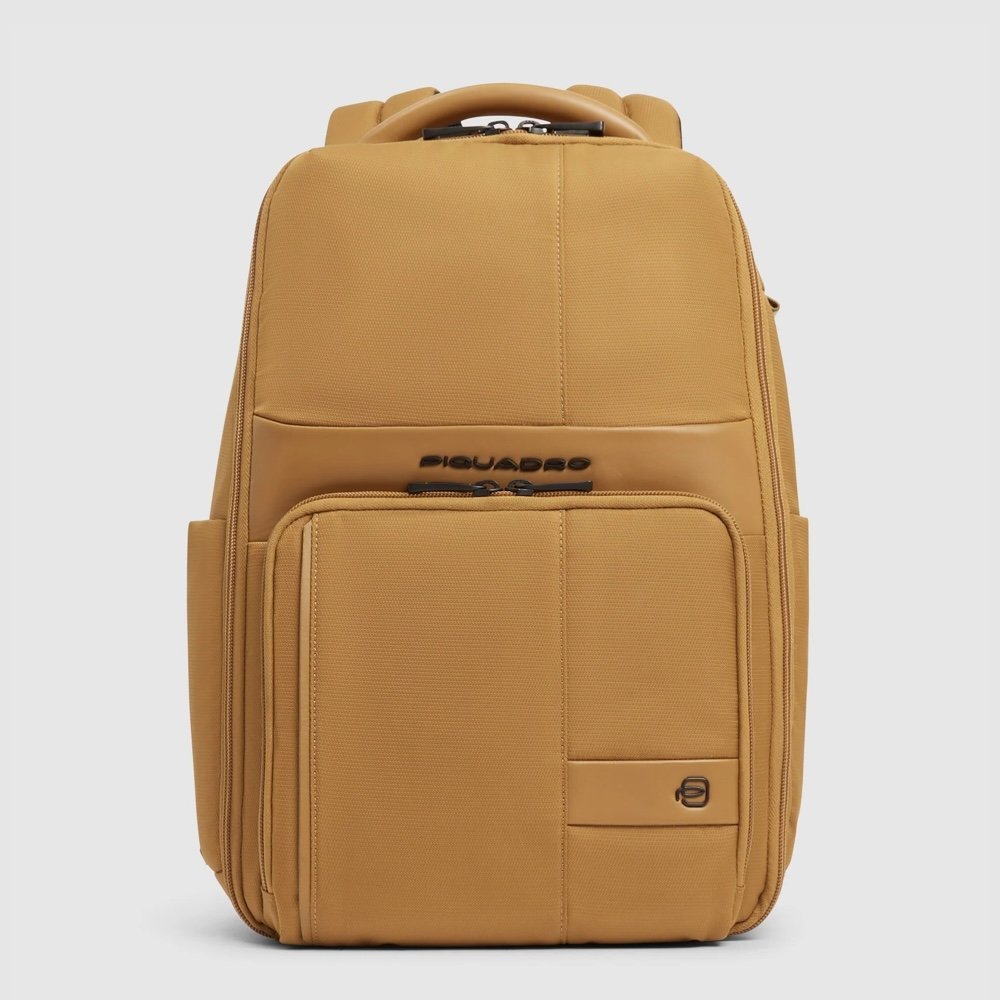 travel backpack for laptop and iPad® in rubberized, water resistant textile with RFID and shock-absorbing protection