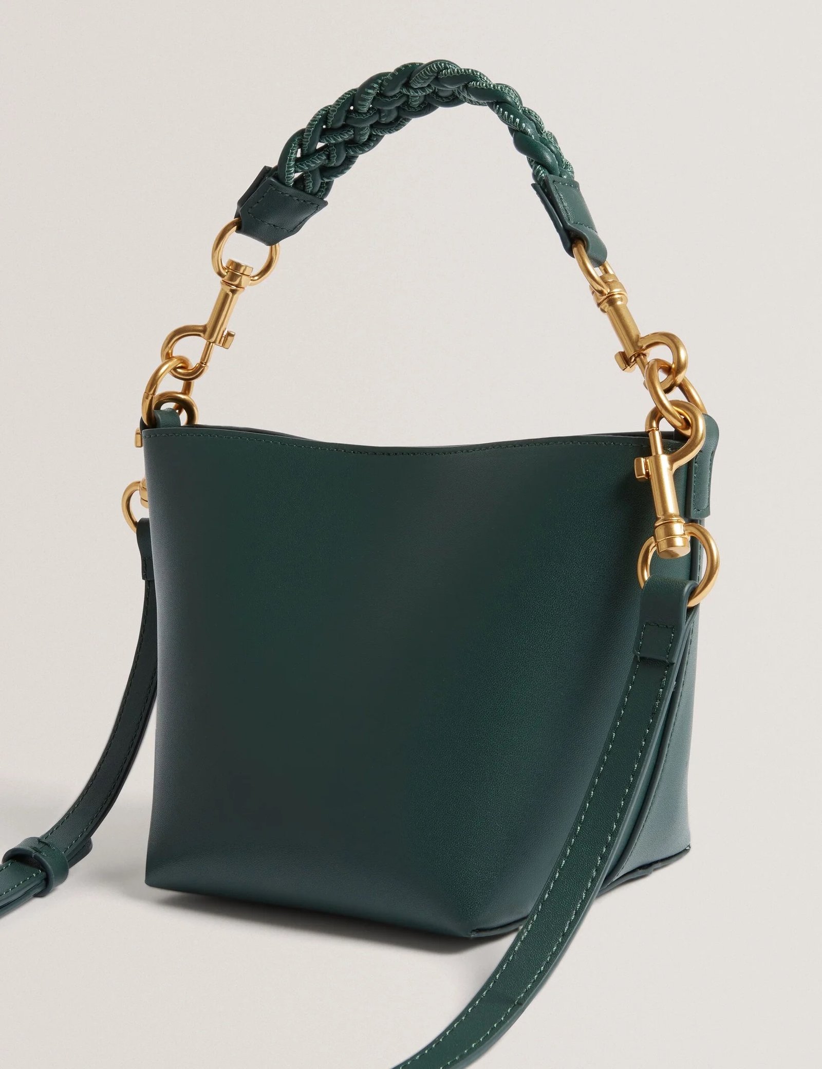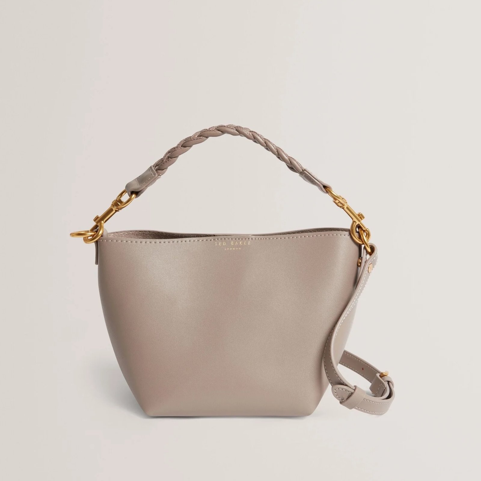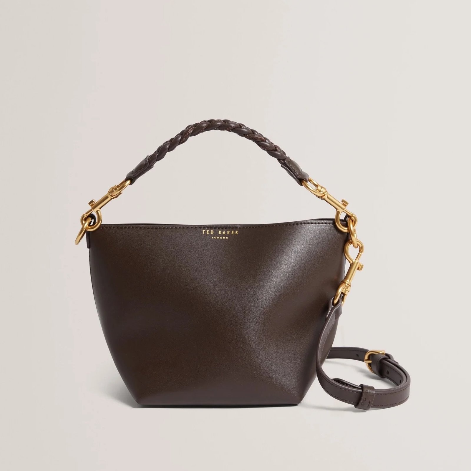 Smooth leather meets artisanal flair with the WAVELY bucket tote bag. Featuring a plaited top handle and adjustable crossbody strap, this compact style is designed for on-the-go elegance.